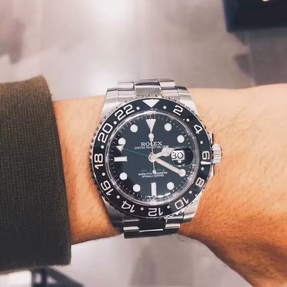 先來看看這款表沒改裝前的樣子,勞力士格林尼治型II系列116710LN-78200腕錶,也被稱之為小綠針。格林尼治型II系列也是大家比較喜愛的勞力士系列表款之一,低調大氣的黑色,穩重而不顯奢華。很多人不知道的第一眼會以為戴的黑水鬼,不過這個要比黑水鬼俏皮,畢竟綠色的GMT指針很出眾!