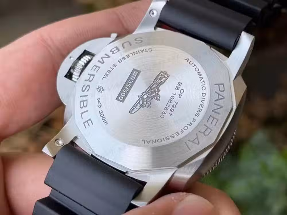 VS沛納海1209後蓋採用密底的設計,大大增強了腕錶的防水性能,也能更好的保護內部機芯的正常運轉。表底為正十二邊形,底蓋上的圖案刻字清晰可見,包括品牌logo工整細膩,因此也能看出VS的用心程度!搭載VS自主研發的P.900自動上弦機芯,穩定性和耐用性也是相當不錯的。