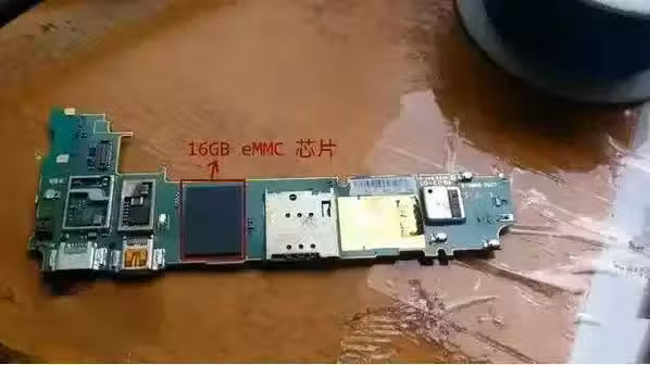這個黑坨坨是來自國外的eMMC晶片,內部擁有16GB內存空間,我們第一步想辦法將其拆下來!