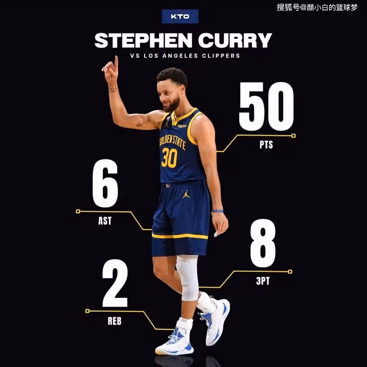 史蒂芬-庫里這場比賽在第三節單節拿下21分+3記三分球,他一人扛住了快船的攻勢,全場比賽39分鐘,28中20,三分14中8,罰球4中2,拿下50分6助攻2籃板2搶斷,命中率71.4%,三分命中率57.1%,他打出了一場完美的表現。