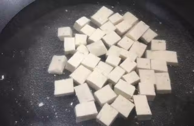 6、 最後在一個模具中,一層香椿一層豆腐這樣疊放著;