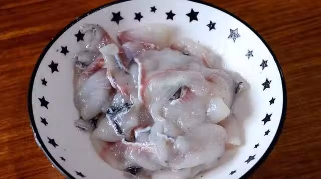 3、鍋中倒油,油熱將生薑片放入進去,然後將腌制的魚片倒入進去炒至變色;