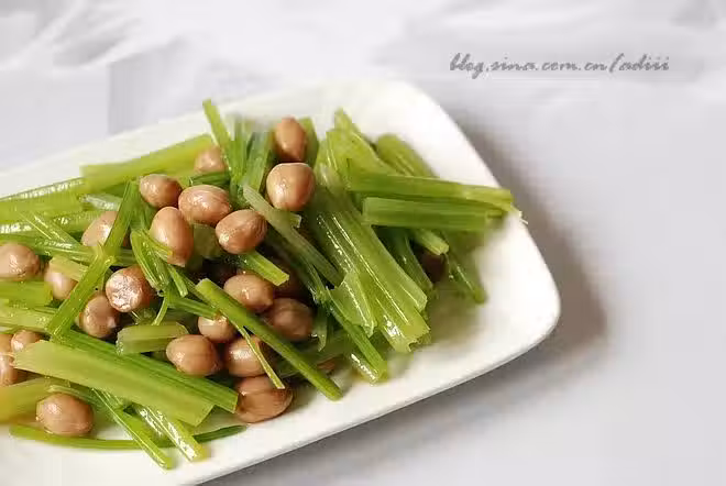 1、芹菜去葉,洗凈切斷,然後用熱水焯一下