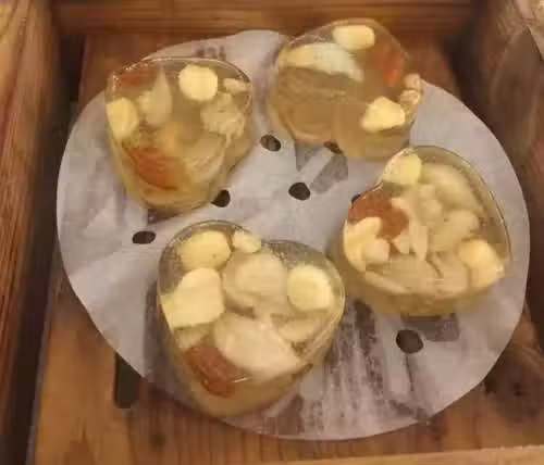 材料:鮮蓮子500克、馬蹄粉250克、清水1600克、砂糖300克