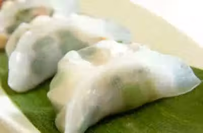 7、把粉團分成小粒,滾成圓形薄皮,放入適量之餡包成餃形,放在已搽油之蒸籠內,蒸10分鐘至熟。