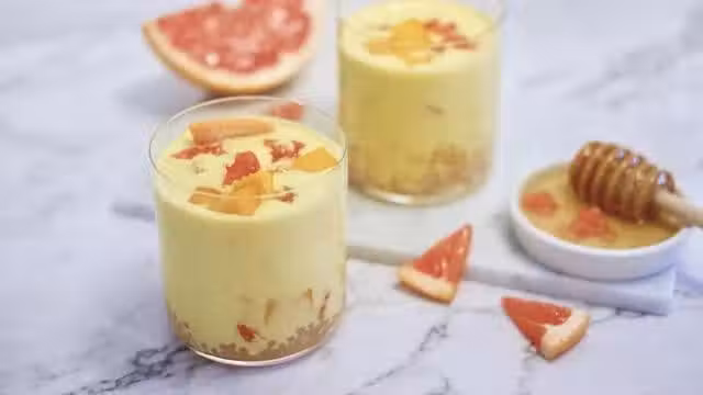 做法步驟:西柚剝好備用;兩隻芒果,去皮留下果肉,切塊,留下一些裝飾用。其餘的芒果果肉加牛奶、椰漿、蜂蜜,放入破壁機內,攪打成泥。再來煮西米,煮好了西米燜一會,過涼水,倒入杯子內,取適量西柚肉與適量芒果肉,一同放進芒果漿中,倒入西米杯內,擺上剩下的芒果和西柚肉裝飾,完成。