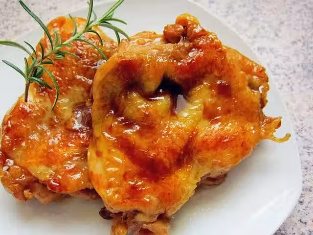 4、倒入調好的照燒汁,繼續兩面煎,澆上少許蜂蜜,收汁即可
