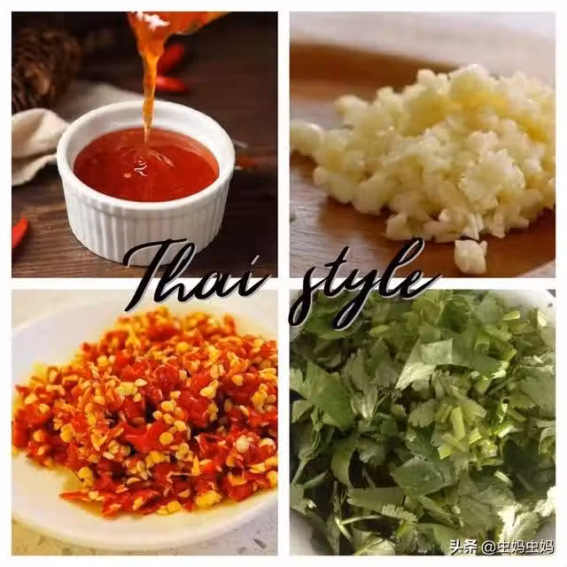 泰式甜辣醬辛辣味比較重,小夥伴們酌情添加。小米椒和香菜碎是精髓,出鍋後還可以適量滴一丟丟檸檬解膩。