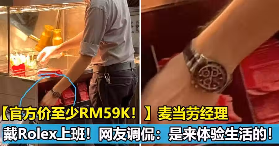 【官方價至少RM59K!】麥當勞經理戴Rolex上班!網友調侃:是來體驗生活的!