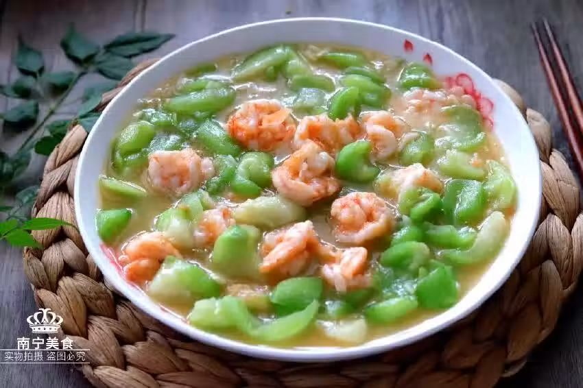 鮮蝦300g、絲瓜1根、蒜米3粒、料酒一湯匙、食鹽一湯匙