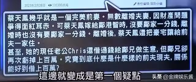 蔡天鳳被曝每年都捐1000萬給慈善組織,但行為卻涉嫌洗錢