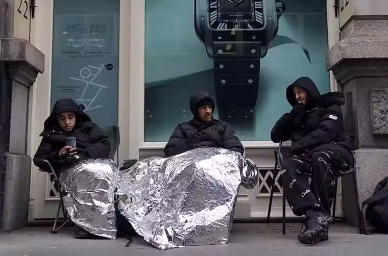 ▲英國首賣新款MoonSwatch時,據說當地氣溫低至華氏37度(約攝氏2度多一點),且現場還下起小雨,突顯排隊買錶的辛苦。Source:Robb Report