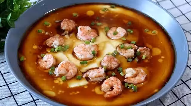 準備食材:雞蛋、蔥花、生抽、蝦仁、豆腐