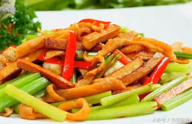 1.芹菜摘洗乾淨,香乾也用清水沖洗一下;