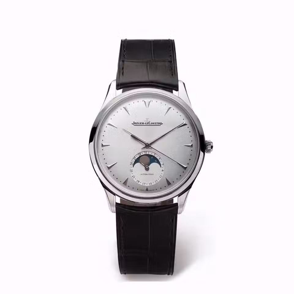 高級的名貴感就是在看似簡單的地方實現不可能實現的設計,這枚積家在超薄工藝上加上月相和日期的設計,就是更為高級的名貴感的展現,充分的彰顯積家工匠的精湛工藝。