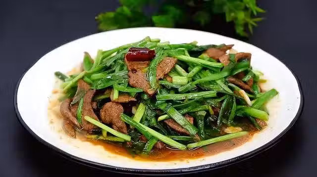 食材:豬肝、韭菜、紅干辣椒、料酒、大蒜、澱粉