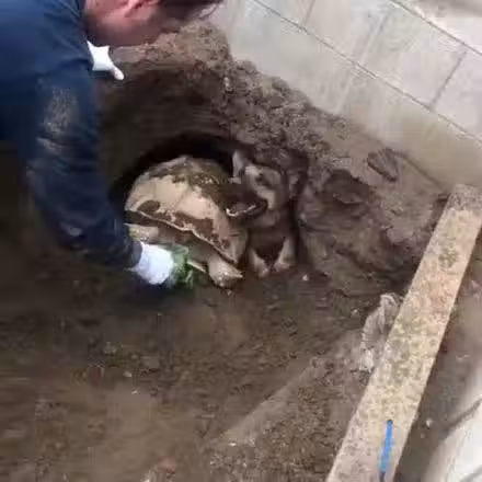 女子稱自己的「丈夫和家裡的狗、烏龜」全卡在地洞裡了,消防員趕到一看笑噴!
