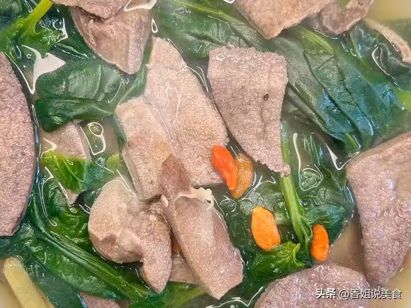 準備食材: 豬肝,菠菜,枸杞子,姜絲。
