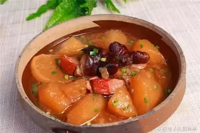 原料:臘豬蹄、臘排骨、白蘿蔔、菜籽油、生抽、醬油、