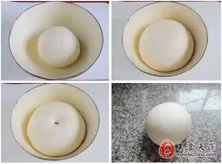 21:發酵好的麵糰用手指蘸上少許乾粉,戳個洞,洞口不起皺、不回縮、不塌陷。