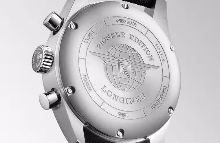 承前所述,錶款內部搭載的機芯為L688.4自動機芯,這枚機芯配置矽游絲零件,擺輪震頻28,800vph,動力儲存66小時既跟上時代趨勢,同時也保有水準以上的實用性。底蓋除了鐫刻代表品牌的飛翼沙漏圖案,還額外鐫刻上」PIONEER EDITION」字樣,這也是不鏽鋼款式所沒有的特徵之一。