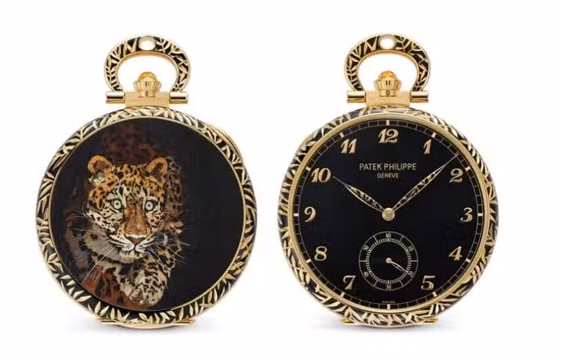 百達翡麗在懷錶背面呈現出一頭從黑暗中出現、伺機而動的捷豹身姿,其中主要表現技法為細木鑲嵌,品牌為了創作出豹的主題圖案,而在懷錶背面鑲上363片木片以及50個鑲嵌物,木片共有多達21種不同顏色和紋理。錶背的邊框、面盤側的外緣等則以手工雕刻刻鑿出熱帶植物圖案,並點綴上黑色內填琺瑯強化手錶的視覺質感,至於面盤以黑色鬱金香木製成,搭配黃金材質的立體寶璣數字時標與柳葉形指針,不僅高貴大方,在黑色面盤上也具有強烈清楚的對比視獨效果。995/137J-001懷錶額外附有一個黃金支架可以讓用家在家中展示懷錶,支架的外觀同樣經過精雕細琢,呈現藤本植物造型,支架底座採用來自剛果盆地的黑烏木製成,底座上鑲有一顆黃色藍寶石達到畫龍點睛的功效。