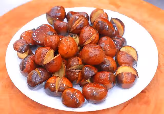 1.準備適量的板栗,清洗乾淨,在每個板栗的半圓形那一面切開一個口子。板栗切口以後更容易煮熟,而且方便剝殼。