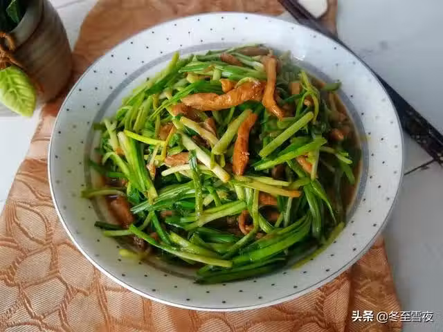 所需材料:蒜苗250克、豬肉150克、油鹽適量、姜1片、料酒1/2湯匙、生抽1湯匙、白鬍椒粉1/2茶匙、