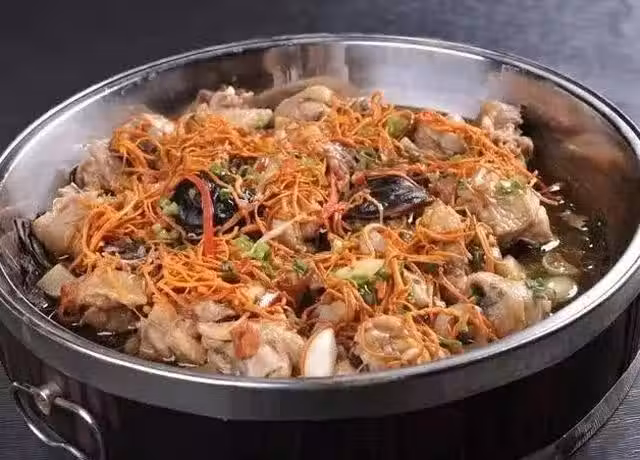 雞肉,黃芪,黨參,枸杞,紅棗,薑絲、玉米澱粉、米酒、蠔油、生抽、鹽、生油、麻油、蔥花。