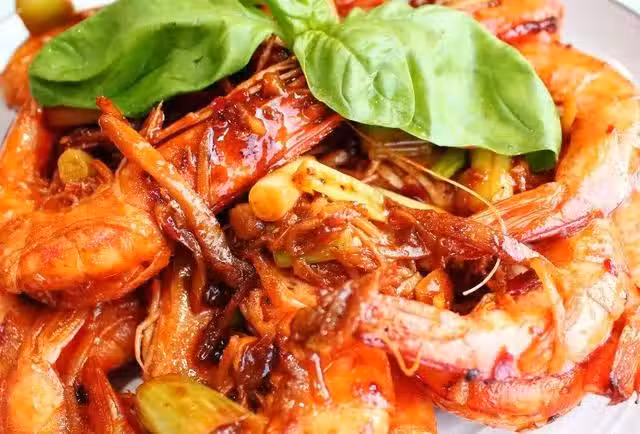 鮮蝦 250 克,蔥花、薑末各適量,青、紅椒絲各幾根。