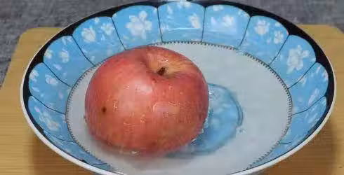最後,用清水把蘋果上面殘留的食用鹽沖洗干凈,就可以食用了。