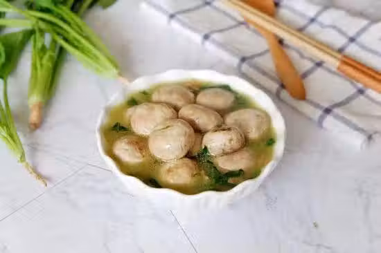 口蘑200克、菠菜100克、薑絲3克、鹽1茶匙、胡椒粉1茶匙、水澱粉1湯匙
