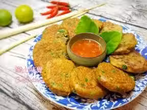 養清素漿是新款的素食材,可塑性甚高,只要稍加變化,便能輕易做出具泰式風味的魚餅。