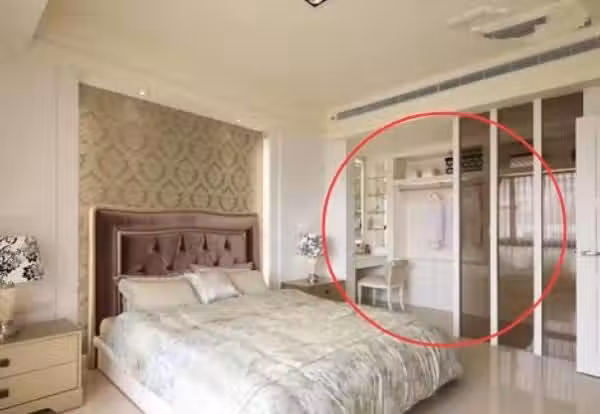 不過我們可以將衣帽間和臥室合併一下,將衣帽間的裝修風格帶到臥室中來,直接取代衣櫃。我們可以將其理解為壁掛式衣櫃。這個衣櫃怎麼理解呢?其實很簡單,就是將牆作為衣櫃,在牆上裝上衣桿,木板,鞋架,一切衣物都掛在衣桿上,鞋子放在鞋架上。像裝多少根衣架就裝多少根衣架,一層衣桿不夠就再裝一層衣桿,實在不夠就裝到天花板!
