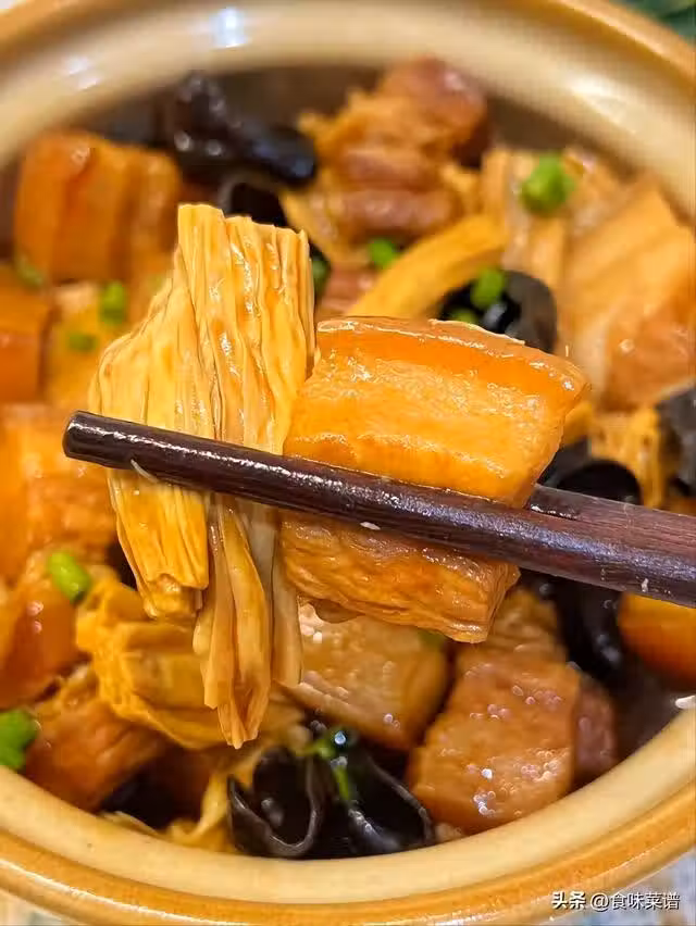 紅燒肉和腐竹碰撞在一起,會發生怎樣的火花呢?肉肉肥而不膩,腐竹濃郁鮮香,就連孩子都吃的噴香。