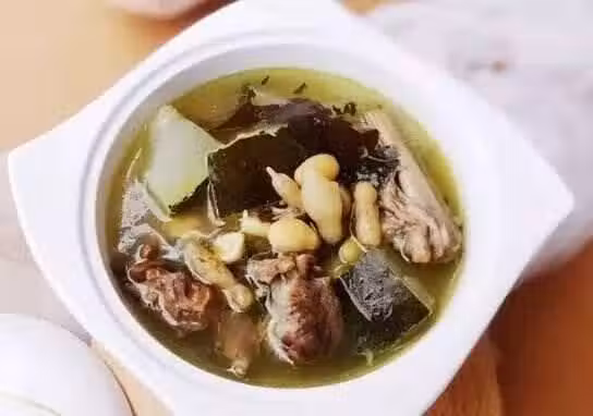 原料:冬瓜80克,薏米50克,水鴨250克,清水1400克,生薑10克,青蔥15克、鹽5克,雞精3克,糖1克,胡椒粉1克。