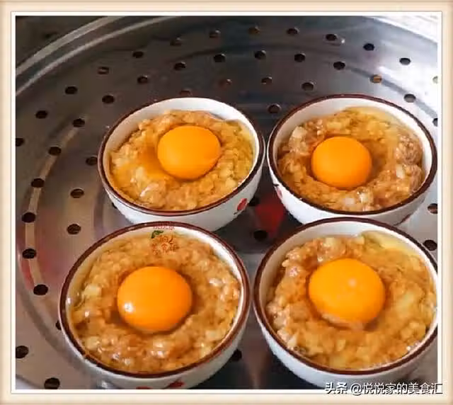 蒸熟後,香味四溢,家人聞著香味都圍了過來,饞得直流口水,迫不及待的讓悅悅加快速度,都在等著開飯了,最後往每一個碗上再撒上一點蔥花點綴一下就可以開吃了,如果在吃的時候,感覺味道比較淡的話,可以在上面淋一點生抽或是辣椒紅油都是非常不錯的。鄉下辦喜宴的時候,每當這菜一端上桌,就立刻會被分掉,因為實在太好吃了啊,而且又剛好是一人一碗的分量,肉嫩菜香,口感鮮美,有肉有蛋,還有細膩香醇的土豆,直接吃或是拌飯吃都行,6個雞蛋打進3個土豆裡,不加水不加油,做法簡單,特別的好吃,營養又解饞!