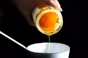 中高速攪拌步驟1的蛋液,同時緩慢倒入步驟2煮沸的蜂蜜。