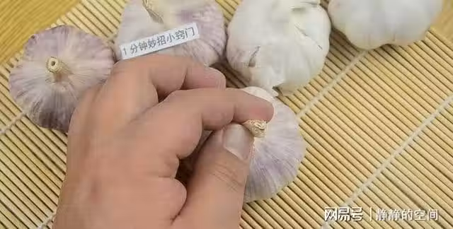 第三個方法,我們來觀察一下大蒜根部的根須,如果大蒜的根部沒有根須,就說明這顆大蒜裡面的水分容易流失,水分流失了就會發軟乾癟,這樣就不容易保存了,所以我們在購買大蒜時,最好不要挑選沒有根須的大蒜。