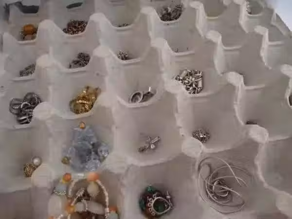 女生有很多飾品,如果收納不好的話就會顯得很凌亂,還丟的到處是,想起來戴的話要找半天,找一個乾淨又結實的雞蛋托,我們可以把飾品分別放進雞蛋托的小格子中,這樣既能方便我們查找,又能起到很好的收納作用。
