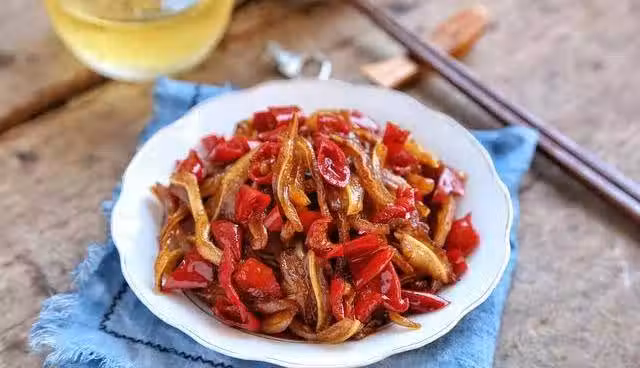 6,最後倒入剁椒翻炒均勻後加入半碗清水,煮沸後大火收汁就能出鍋了。