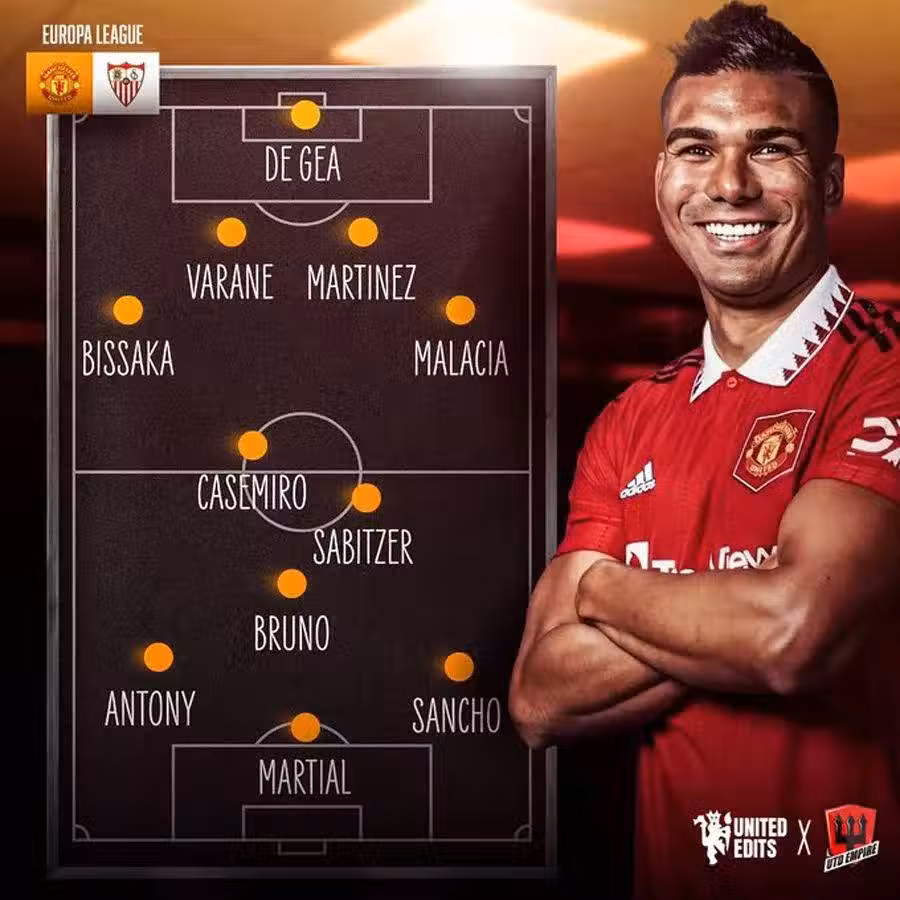 預測曼聯對塞維亞首發:德赫亞/萬比薩卡,瓦拉內,利桑德羅·馬丁內斯,馬拉西亞/薩比策(埃里克森),卡塞米羅/安東尼,布魯諾·費爾南德斯,桑喬/馬夏爾。