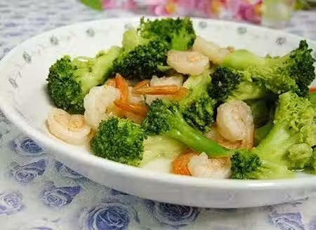 蝦仁15個左右;西蘭花一棵;水;鹽;油