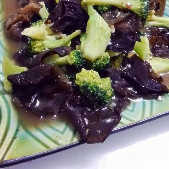 1、西蘭花洗凈去皮掰小朵,木耳泡發撕成小塊