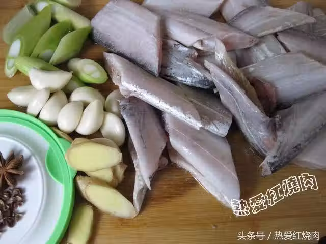 帶魚去鱗去頭尾去內臟洗乾淨切段,準備好蔥姜蒜花椒八角。