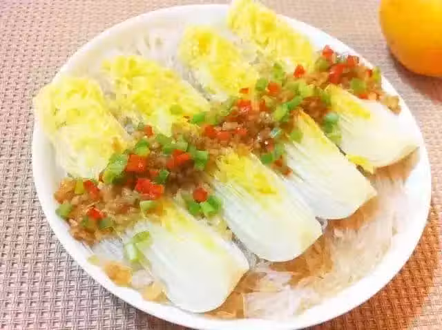 1、娃娃菜瀝水,將菜整株分切,裝盤隔水蒸6-8分鐘至熟。
