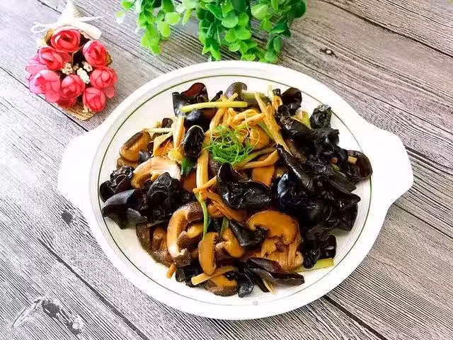2.冬菇木耳提早泡水,冬菇去蒂,木耳摘成小塊