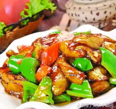 6. 加入高湯、生抽、糖、鹽、茄子、土豆、青椒塊稍微燒一會