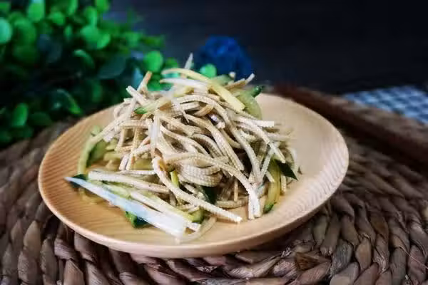 3. 將切好的三種絲放在盤中,加生抽,醋,香油,花椒油拌勻即可。
