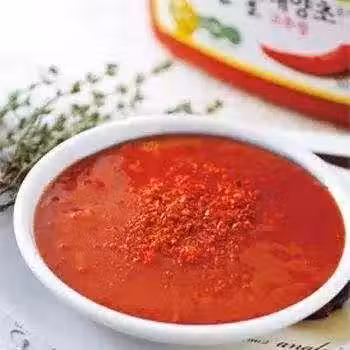 剛完成的韓式辣椒醬呈現紅色的,隨發酵時間愈久,顏色愈深,味道愈香醇
